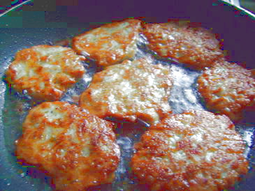 Куриное филе нарезать небольшими кусочками. Замариновать в уксусном растворе (1:1) две большие луковицы, предварительно мелко нарезав. Смешиваем филе и маринованный лук, добавляем майонез, яйца и крахмал. По желанию можно добавить любые специи, зелень. Поставить в холодное место на несколько часов (лучше на ночь). Жарить на хорошо разогретой сковороде, выкладывая смесь ложкой. Приятного аппетита!